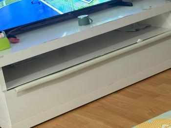 I have tv unit in white colour. It has drawer for storage and also open storage shelf. It has minimal wear and tear marks but in very good condition.