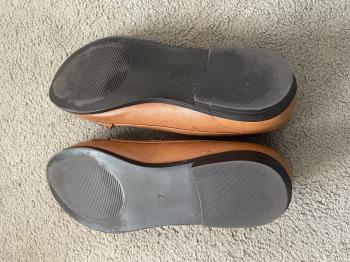 Leather shoes, black soles, metal